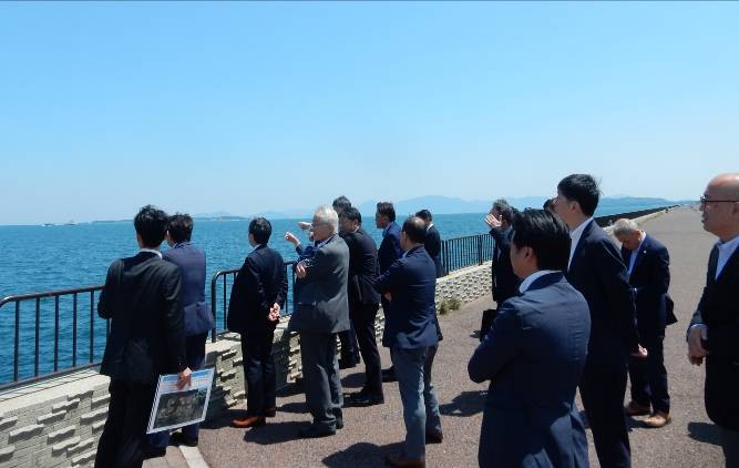 さらに、響灘の洋上風力発電事業について九電みらいエナジー㈱担当者が、実際に洋上風車を見ながら解説。